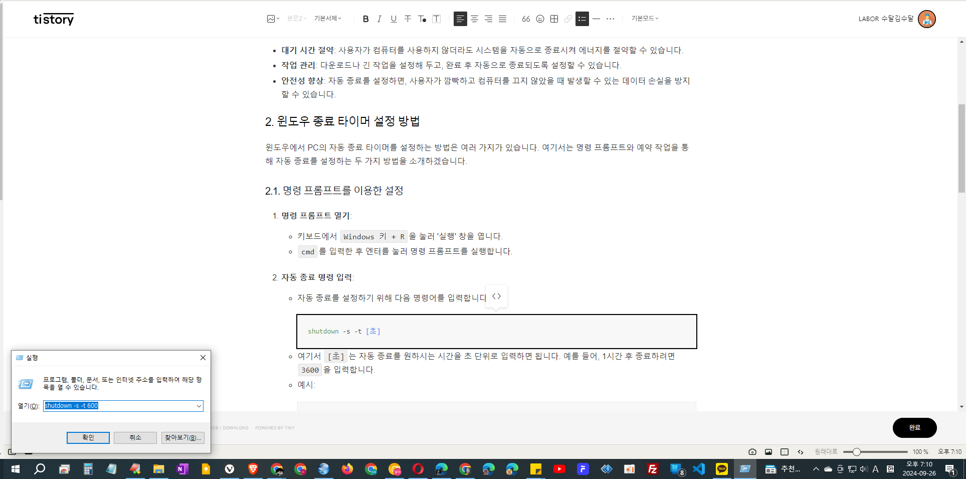 2. 윈도우 종료 타이머 설정 방법