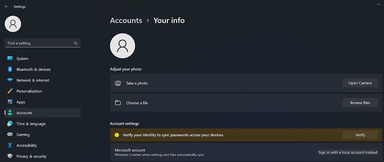 로컬 계정으로 전환한 후, 이제 설정 앱을 통해 비밀번호를 제거할 수 있습니다.