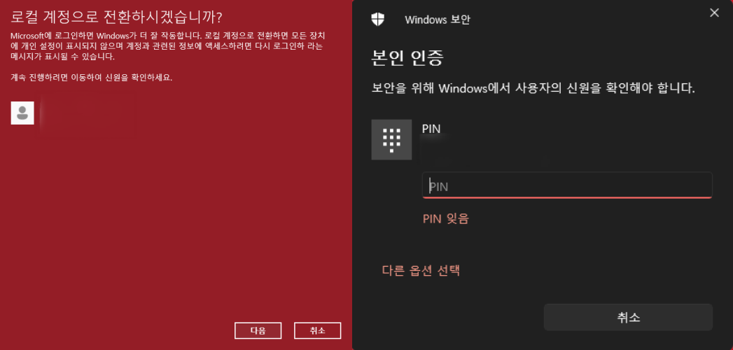 Windows 11 로컬 계정 전환