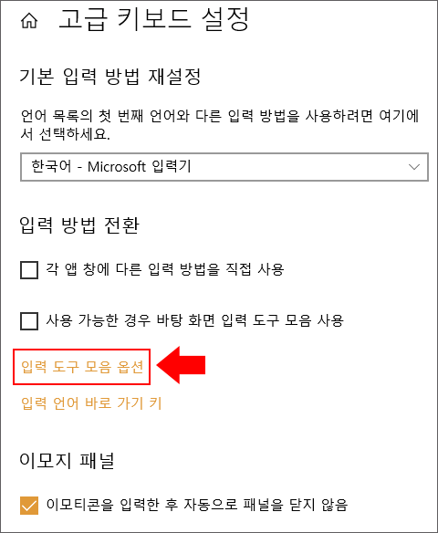 - "입력 도구 모음 옵션"을 클릭합니다.