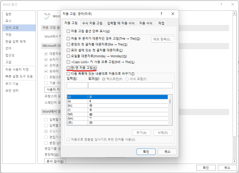 Word 한영 자동변환 끄기 - 자동 고침 기능 비활성화 방법