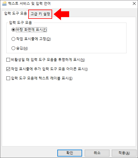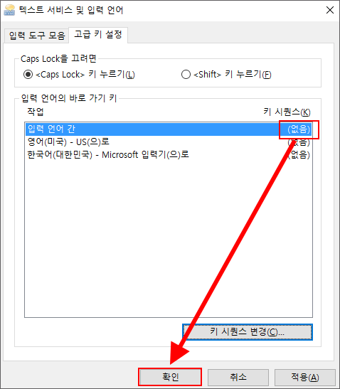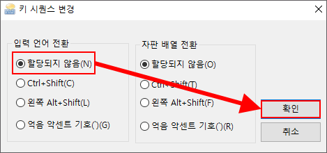 입력 언어 전환 탭에서 할당되지 않음 선택