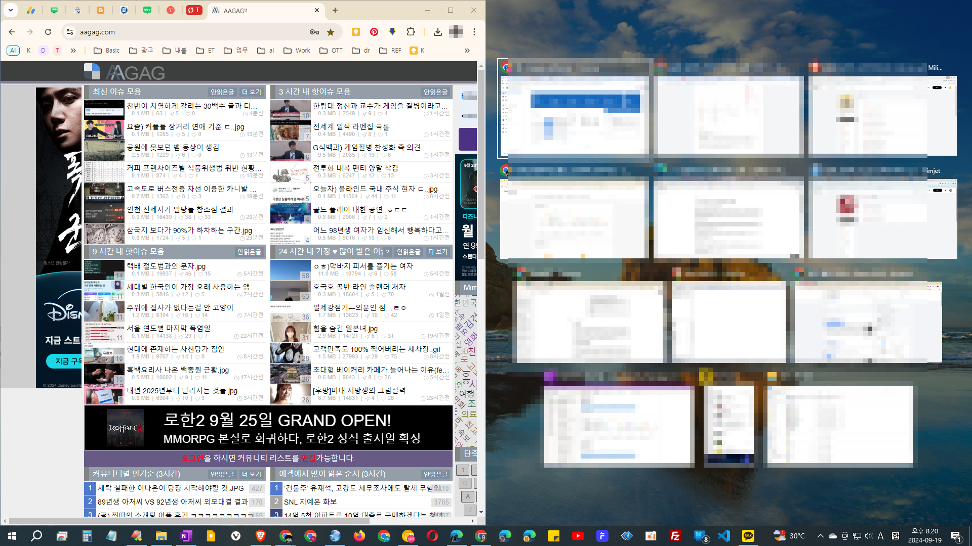 윈도우키+↑또는↓로 최대화하거나 최소화합니다. - 다른 프로그램을 열면 Snap Assist가 활성화되어 화면의 나머지 부분에 해당 프로그램을 고정할 수 있습니다. 이 기능은 한 번에 최대 4개의 프로그램을 화면에 나누어 사용할 수 있습니다.